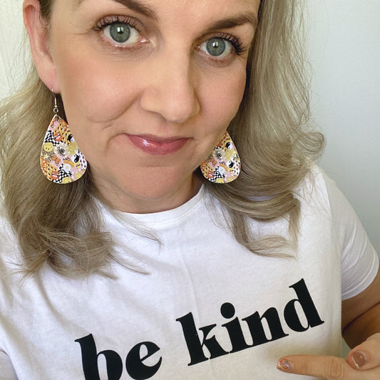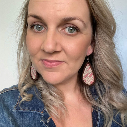 Framed Abstract Pink Teardrops // Timber & Leather Earrings