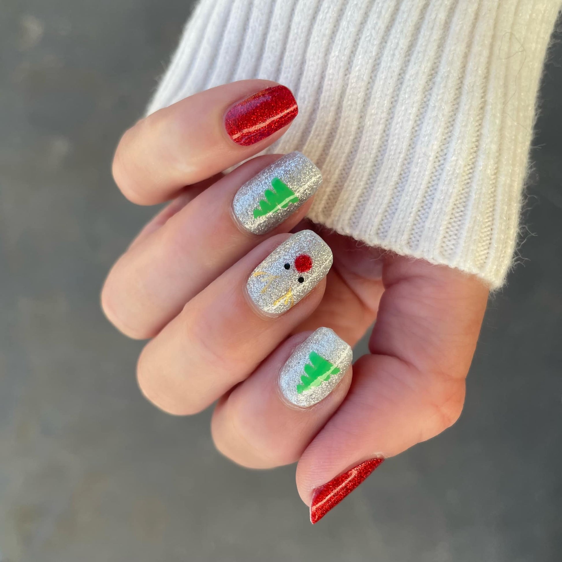 A transparent and glitter mixed manicure design nail polish strip. Suitable for natural, shellac, acrylic, and gel nails. 100% real nail polish, non-toxic, vegan friendly, and cruelty-free.