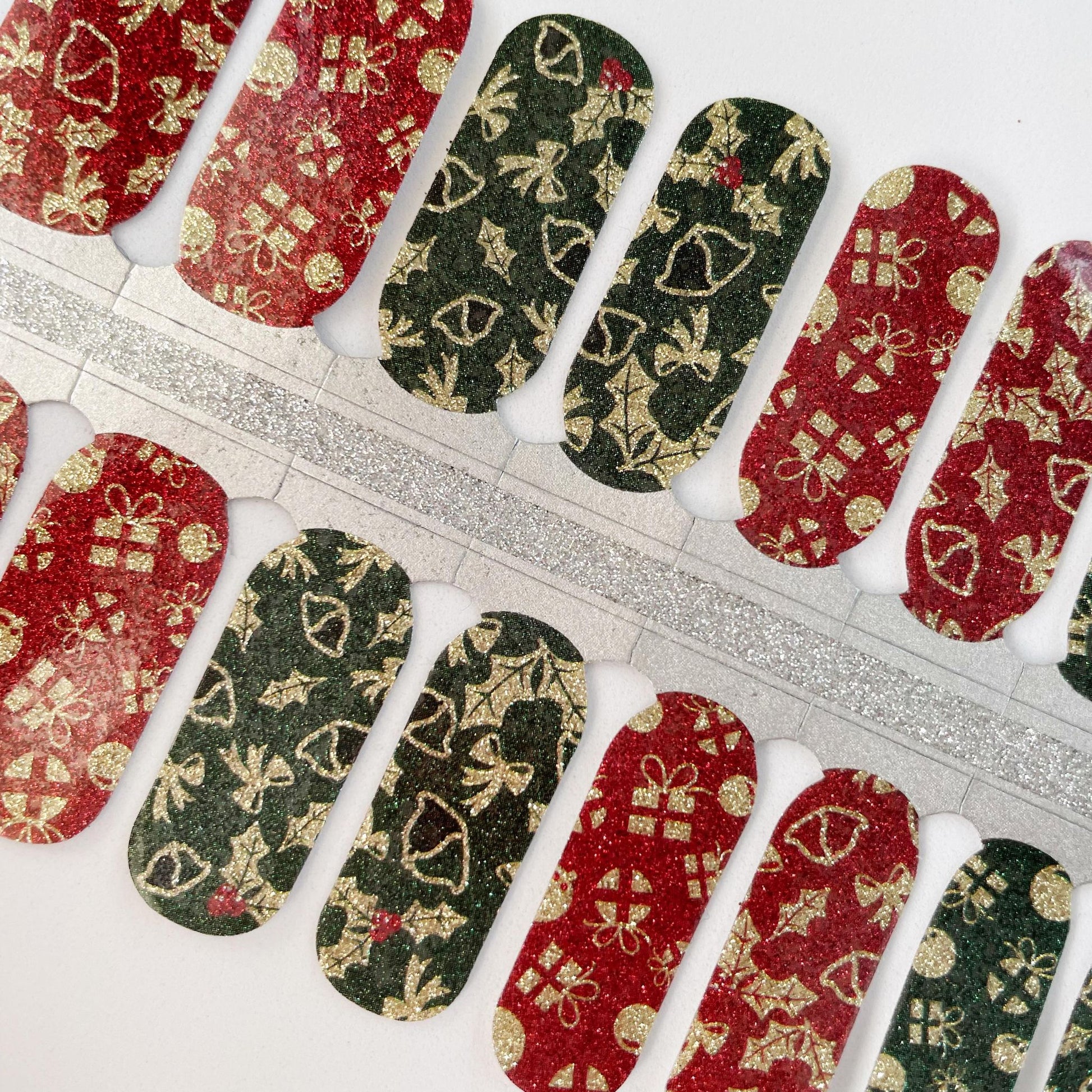 A glitter mixed manicure design nail polish strip. Suitable for natural, shellac, acrylic, and gel nails. 100% real nail polish, non-toxic, vegan friendly, and cruelty-free.