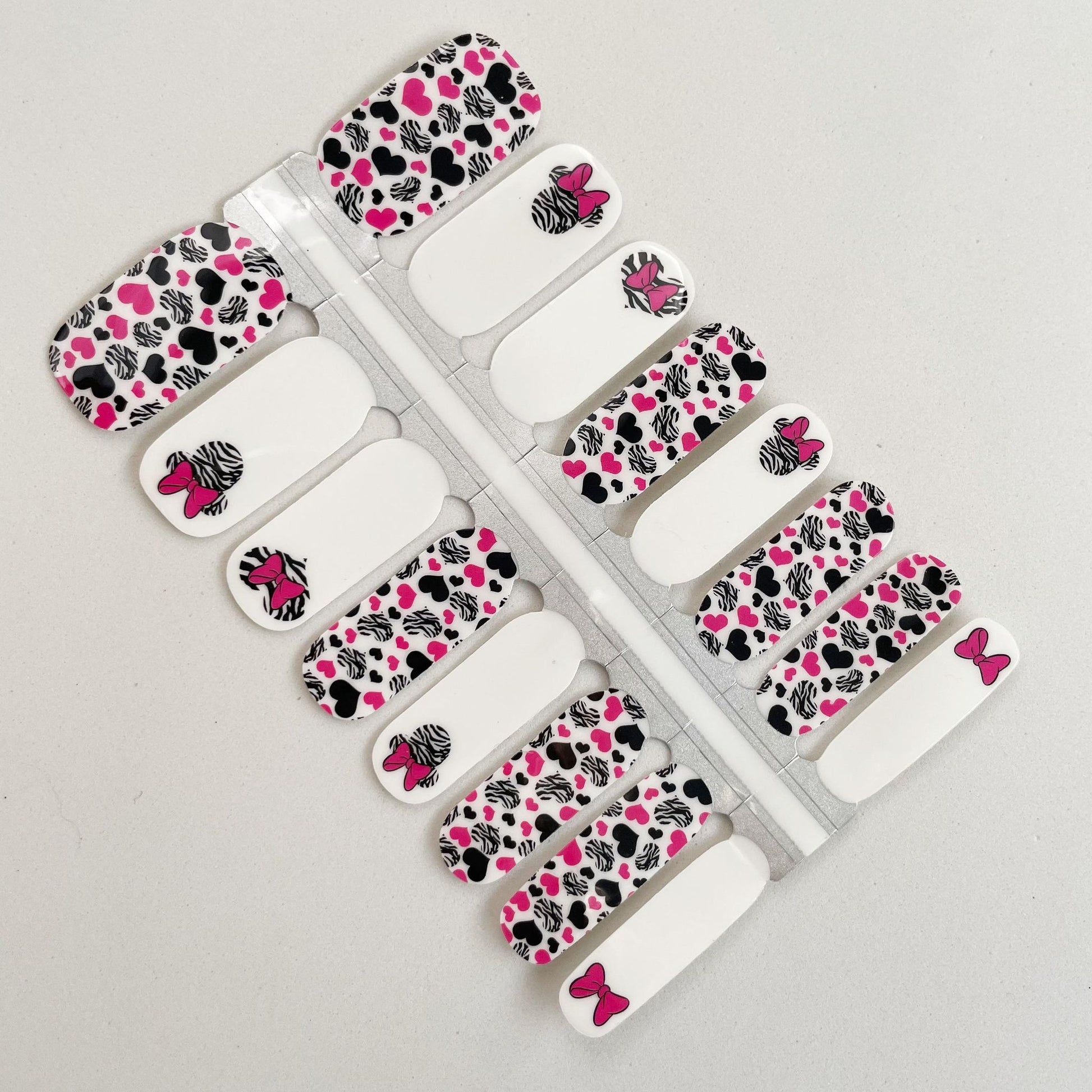 A glossy nail strip featuring your favourite mouse! Suitable for natural, shellac, acrylic, and gel nails. 100% real nail polish, non-toxic, vegan friendly, and cruelty-free.