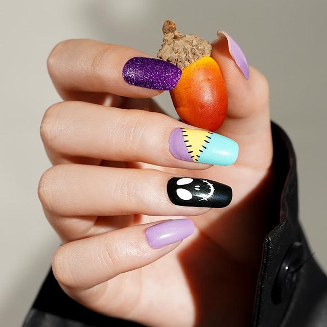A glossy and sparkly nail polish strip perfect for Halloween. Suitable for natural, shellac, acrylic, and gel nails. 100% real nail polish, non-toxic, vegan friendly, and cruelty-free.