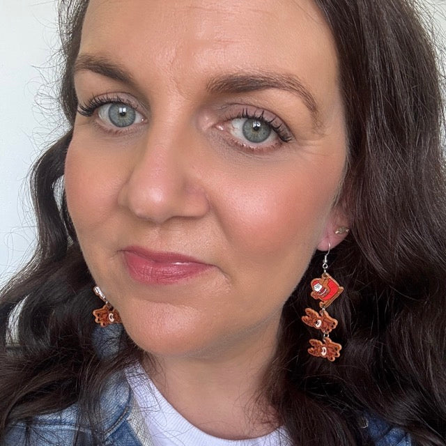 Christmas earrings featuring Santa and his reindeer on an important flight!
